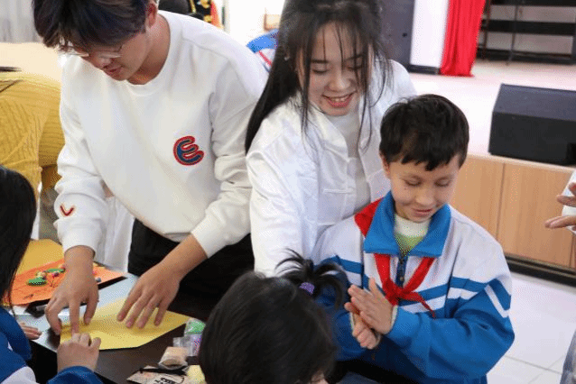 在我院代表向特殊教育学校赠送红领巾、团徽等物资后,伴随着轻松的音乐,劳动周的学生们与特殊教育学校的孩子们做起了手工,通过一起在彩色卡纸上捏橡皮泥花朵、笑脸,大学生和特殊儿童之间搭建了沟通的桥梁,最后特教学校的同学们成功做好了自己精心准备的礼物,并共同分享自己亲手收获的劳动果实,特教学校洋溢着一片欢声笑语。通过此次活动,丰富了同学们的校园生活,激发了人文学子的劳动热情,提升了劳动技能,达成了以劳健体、以劳增智、以劳正心的教育目的。