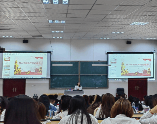学生第一党支部书记唐元芳老师,对入党积极分子开展《加入中国共产党的程序》的专题辅导,就申请入党条件、党员的基本条件、入党积极分子的确定、教育和考查、大学生入党流程及注意事项进行讲解,使全体同学们了解了入党的正确流程,明确了作为一名党员的职责和义务,增强了同学自身的责任意识。