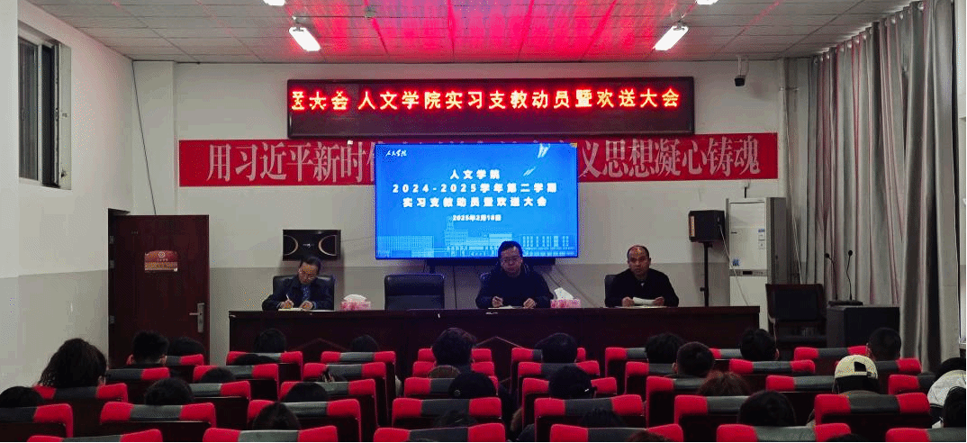 2月18日上午,人文学院在204会议室隆重举行2024 - 2025学年第二学期实习支教动员暨欢送大会。本次大会由学院副院长尼扎吉·喀迪尔主持,学院党委书记周振鑫、院长薛玉萍等领导出席,80余名实习支教班级代表参会。