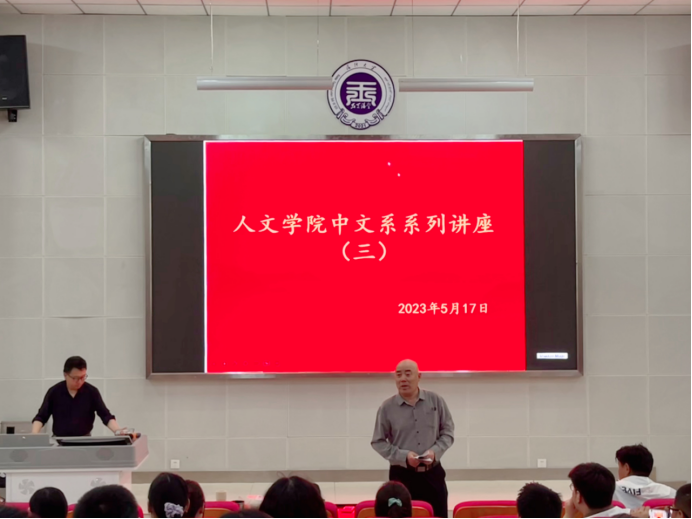 2023年5月17日晚21:00至22:30,北京师范大学教授、博士生导师翟文铖教授应喀什大学人文学院邀请,于我校人文法政报告厅做了题为“汪曾祺的儒家风范”的讲座,活动由喀什大学人文学院卢兆旭教授主持。本次讲座是我院中文系主办的“春季学期系列学术活动”讲座系列第三讲。人文学院党委书记、中国语言文学一级学科负责人杨波教授及人文学院教师和研究生、本科生聆听了讲座。