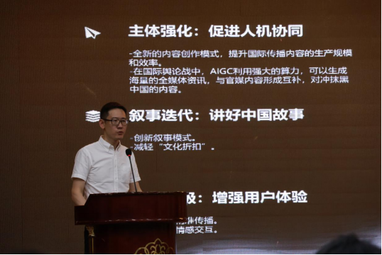 浙江大学传媒与国际文化学院院长、党委副书记、浙江大学融媒体研究中心主任、教育部青年长江学者、国家社科基金重大项目首席专家韦路教授作了题为《AIGC时代国际传播的新挑战与新机遇》的主旨发言;