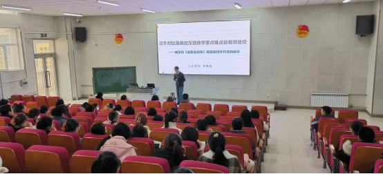 整场讲座内容详实,角度鲜明,通过环环相扣的内容设计,让学生对英汉对比方法有了较为清晰的认知,最后在互动环节,老师、同学们积极向老师询问问题,于老师就提出的问题及想法进行耐心地解答和交流,为老师、学生们以后的学习和研究提供了思路。同时,于老师在讲座的最后,就学生在专业学习过程中出现的问题和疑惑进行了答疑,并鼓励学生努力学习专业知识,打牢汉语国际教育专业基础。